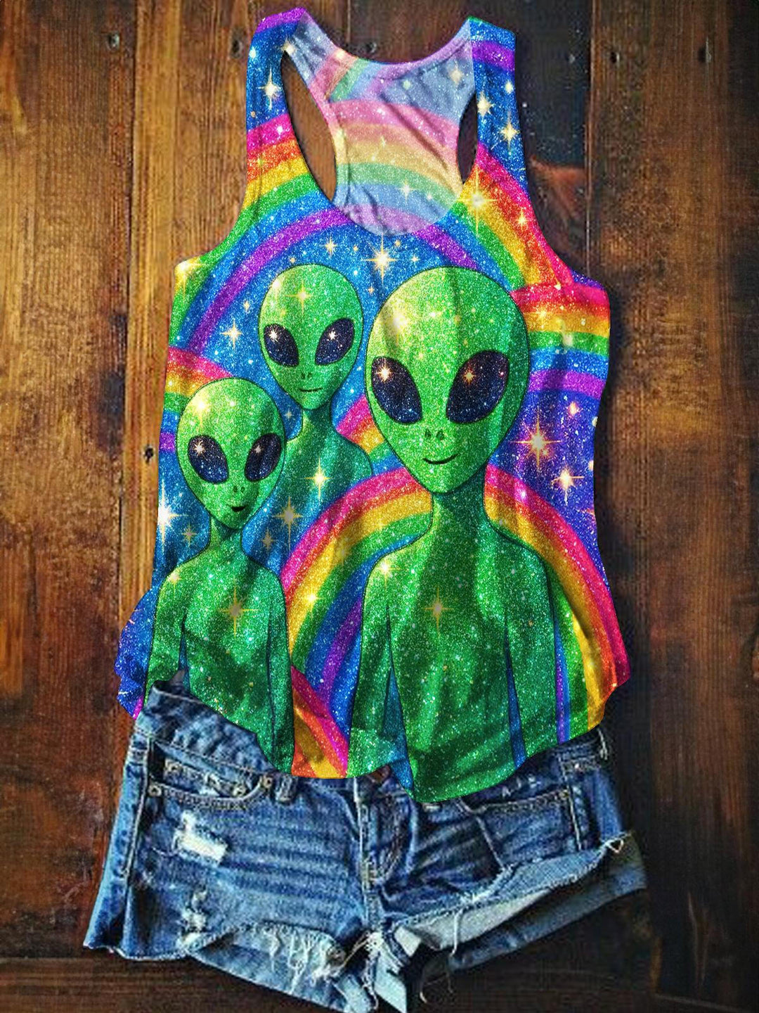 Hippie Alien Print Casual Tank Top