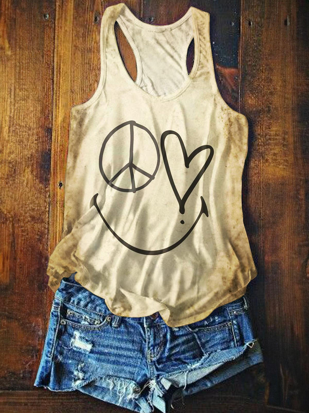 Hippie Smiley Face Printed Casual Tank Top
