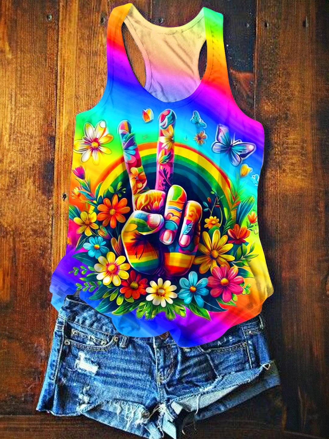 Colorful Tie-Dye Butterflies Hippie Peace Printed Casual Tank Top
