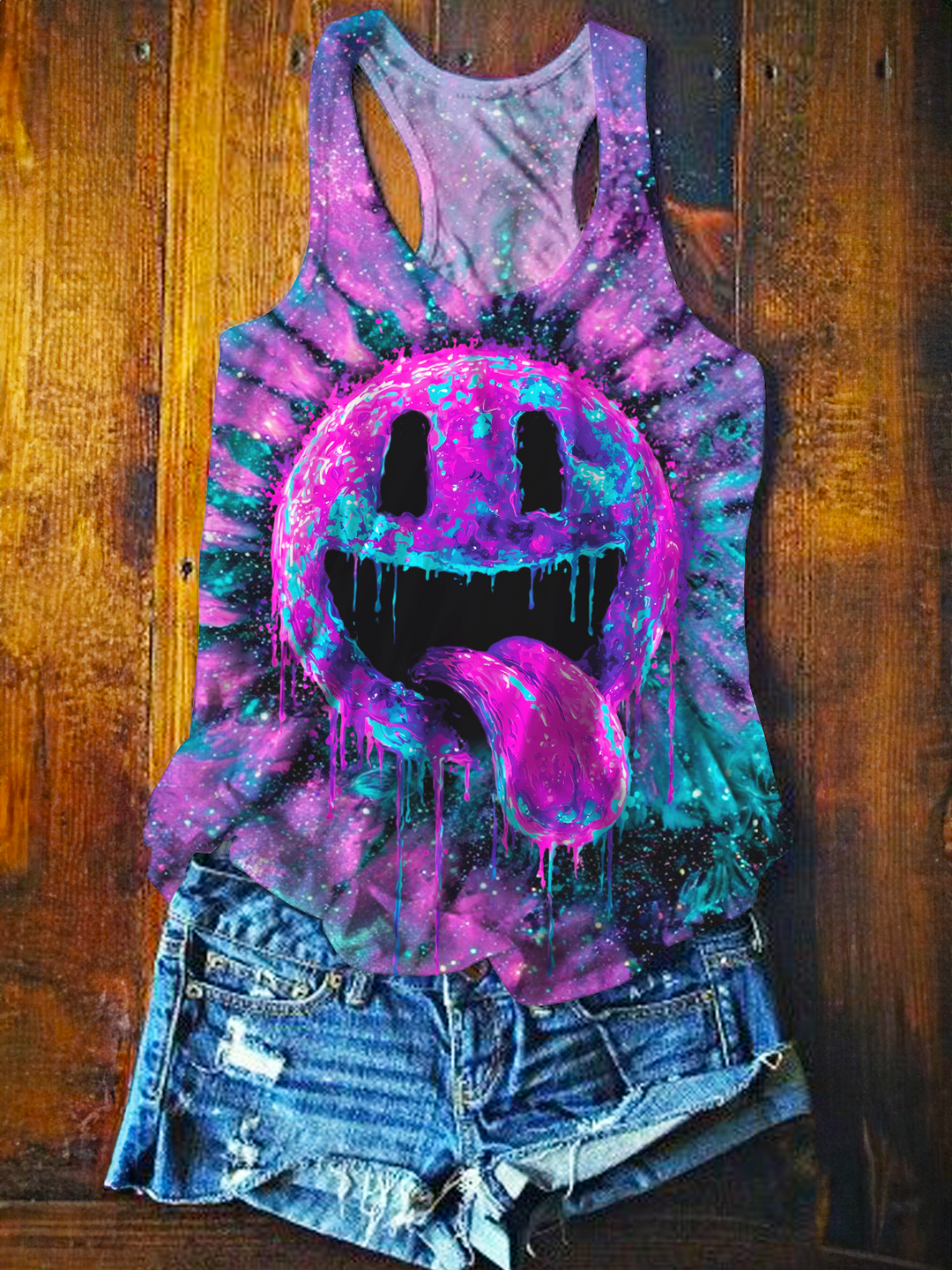 Fun Tie-dye Smiley Face Printed Casual Tank Top