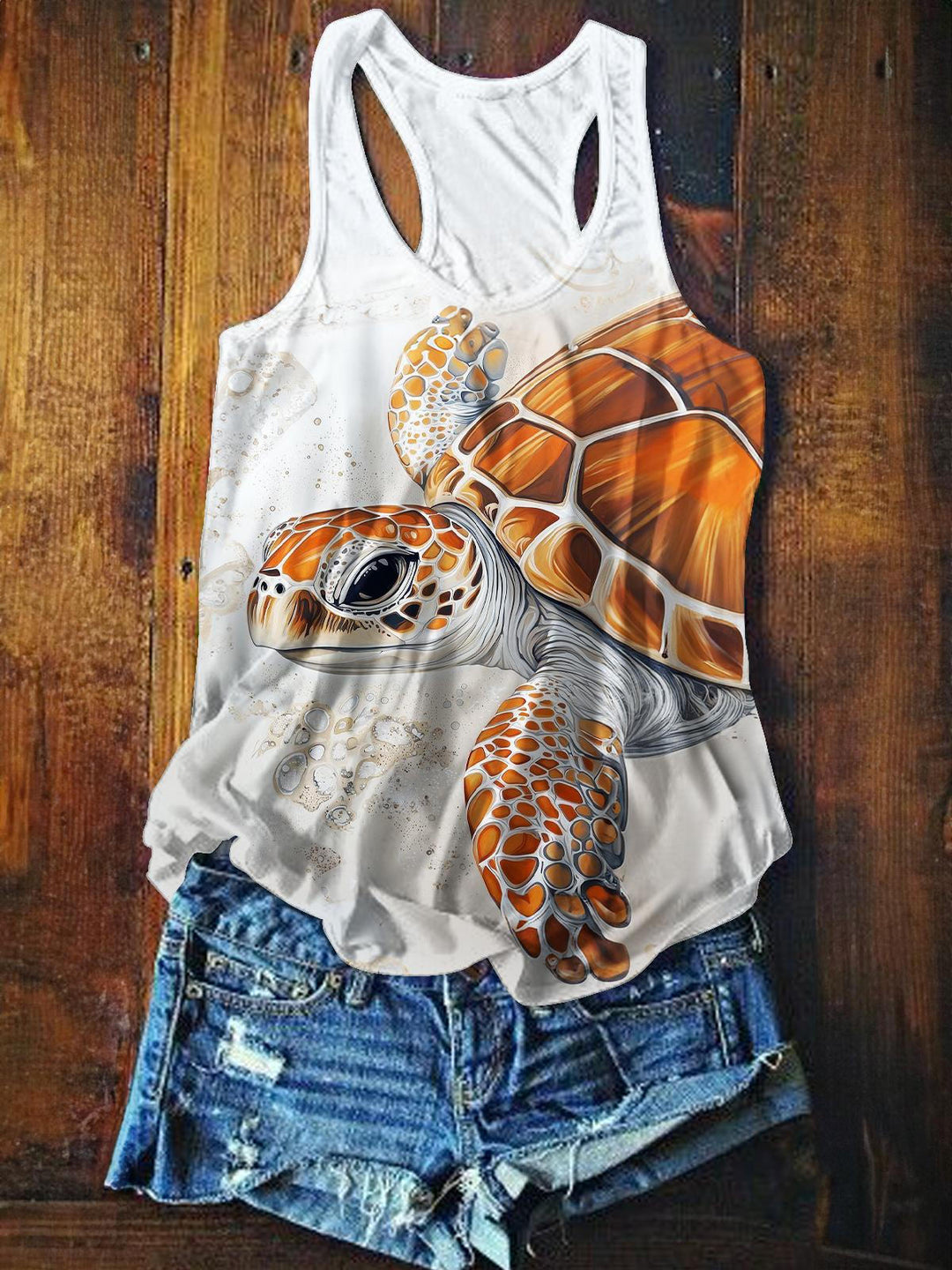 Turtle Printed Casual Tank Top