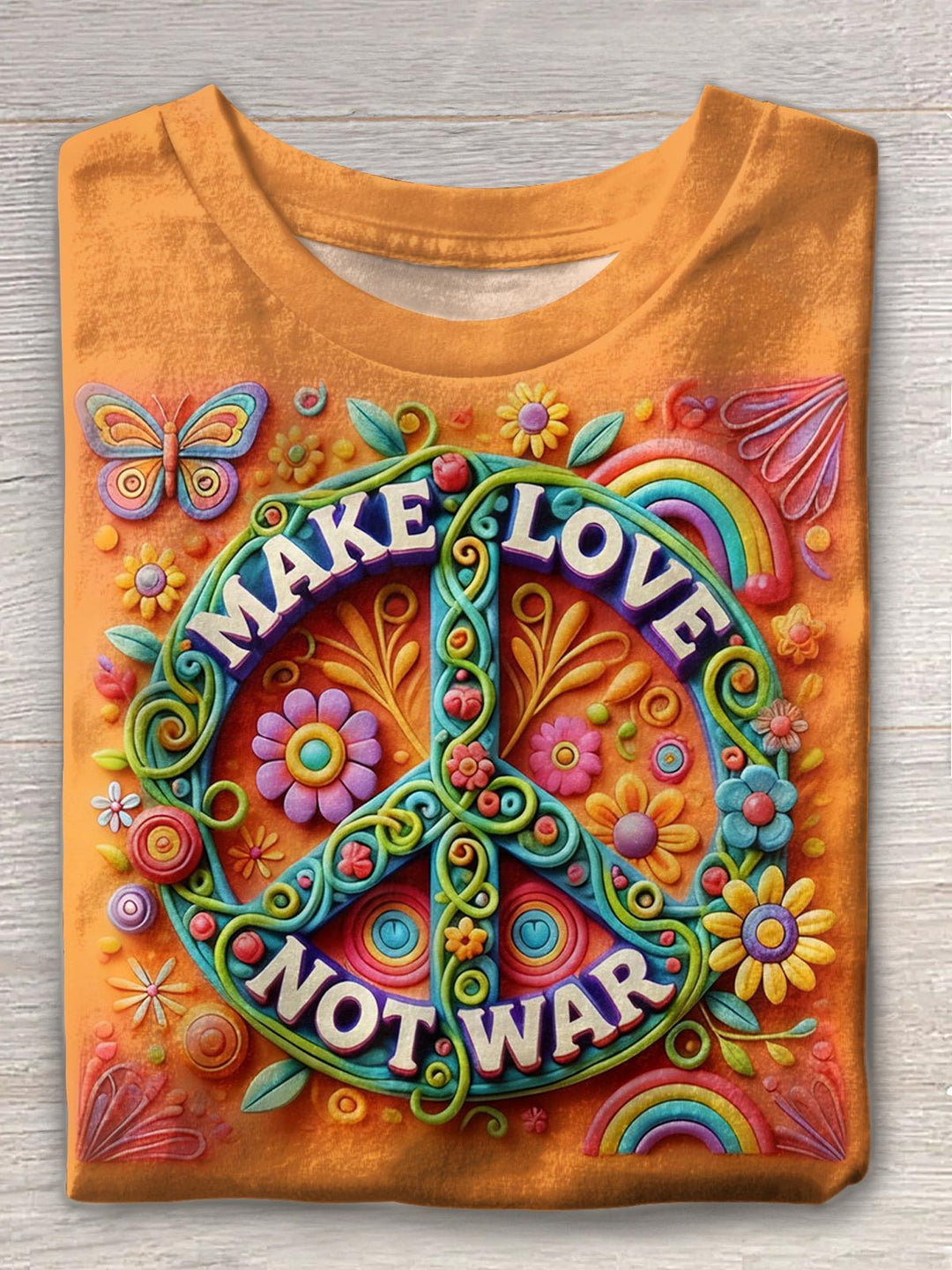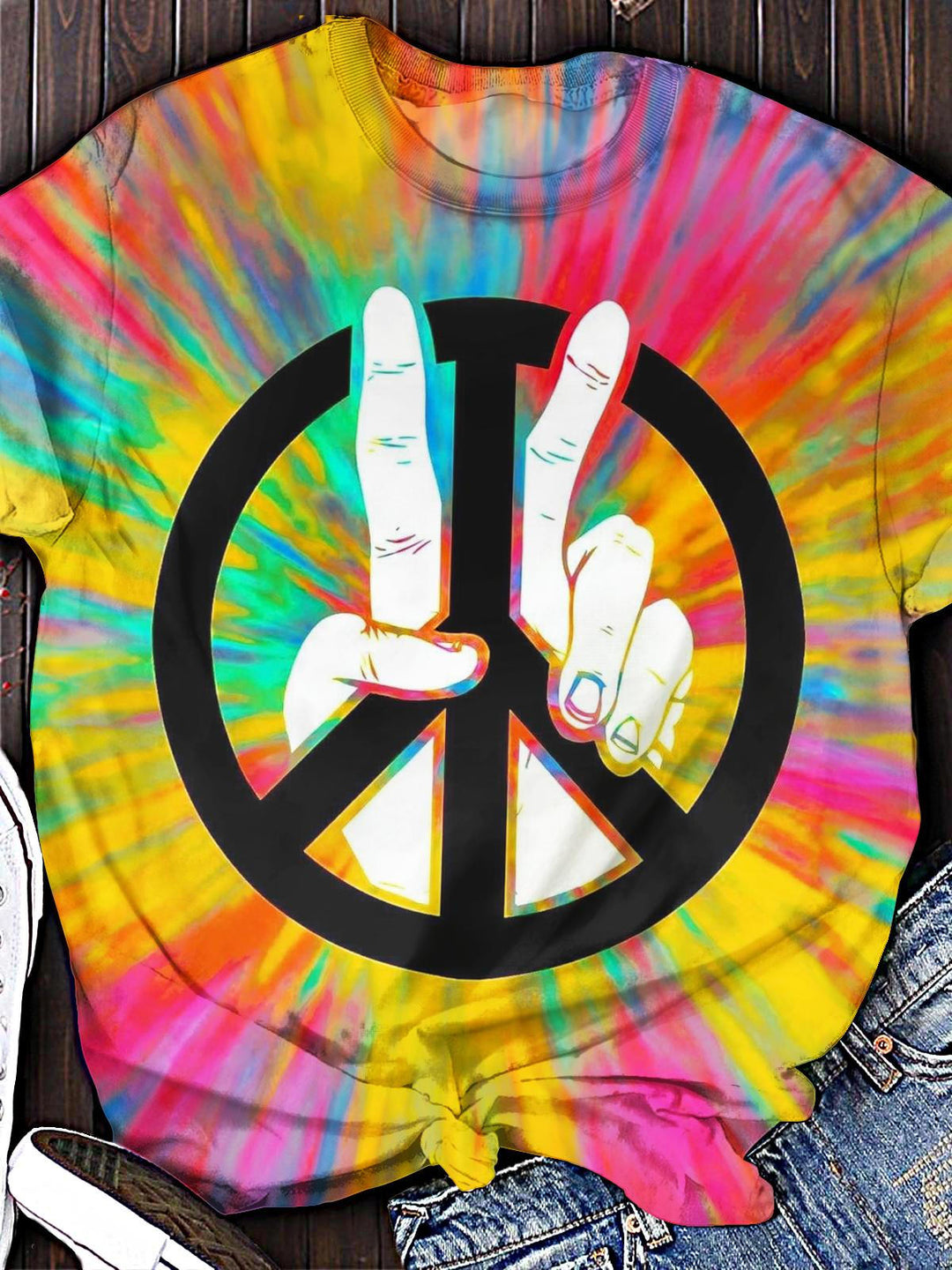 Hippie Retro Print Crew Neck T-shirt