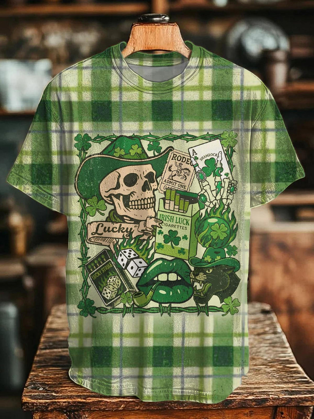 Retro St. Patrick's Day Skull Crew Neck T-shirt