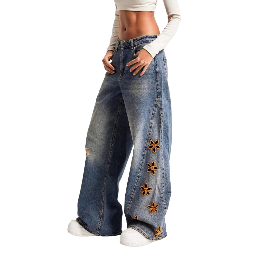 Floral Embroidered Jeans High Waisted Wide Leg Vintage Flower Jeans Stretchy Denim Pants for Streetwear Party superb