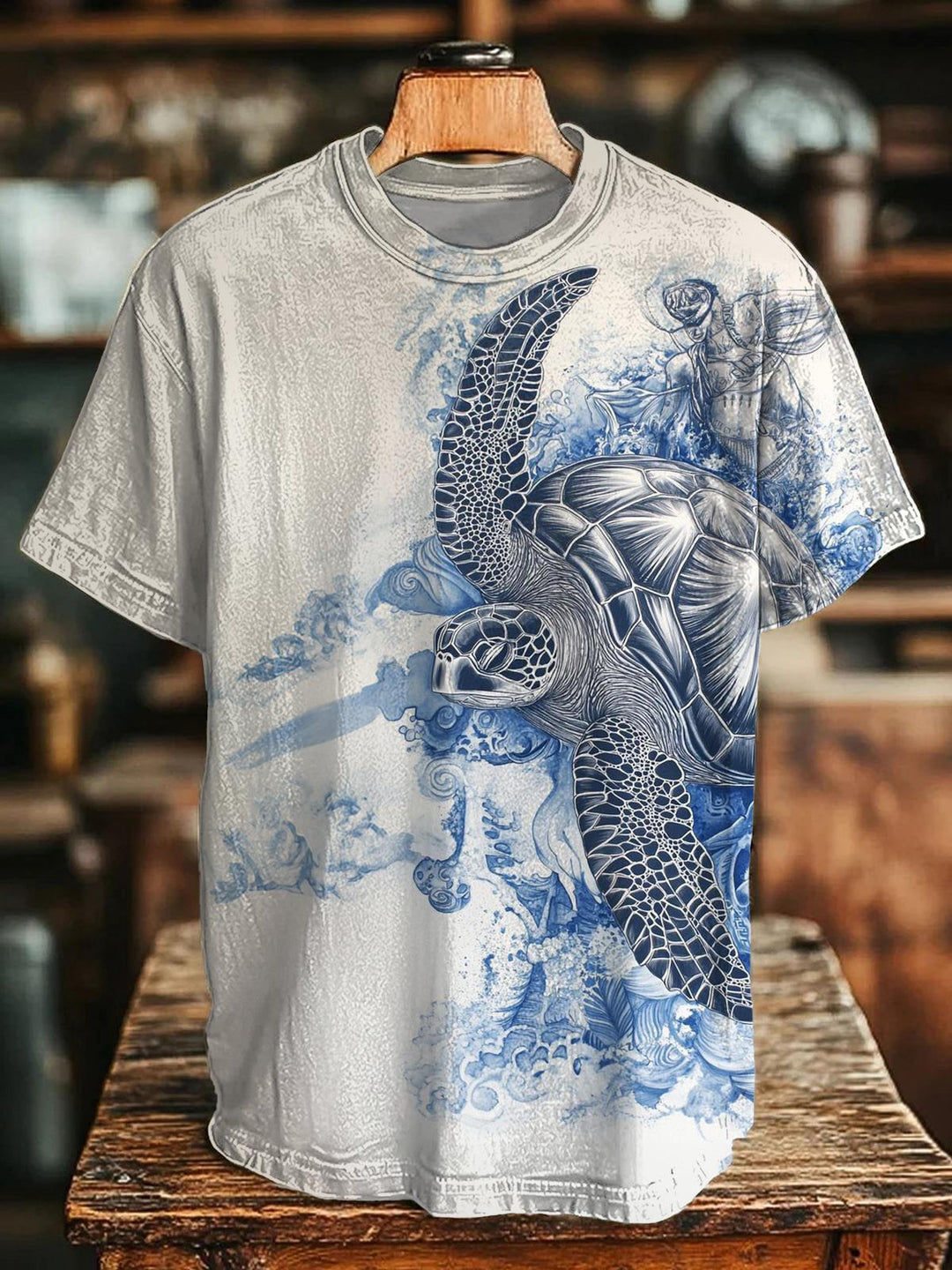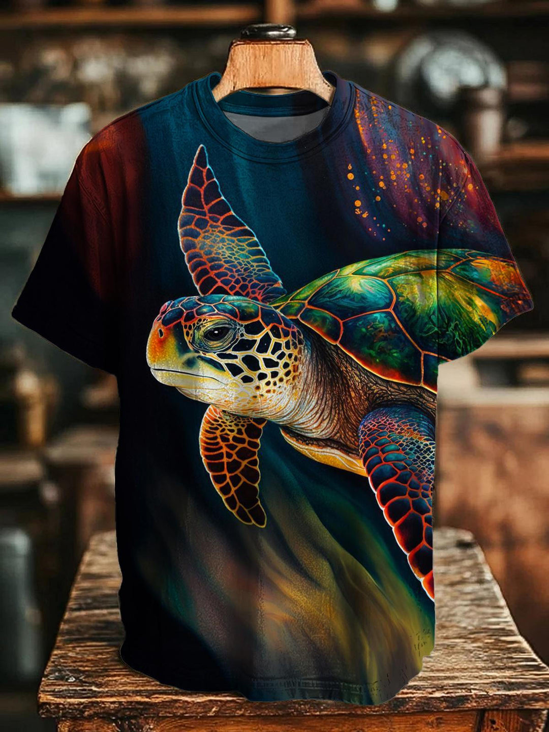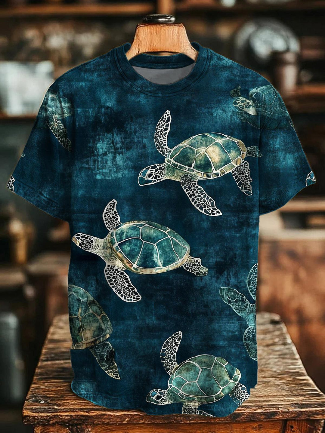 Retro Art Turtle Crew Neck T-shirt