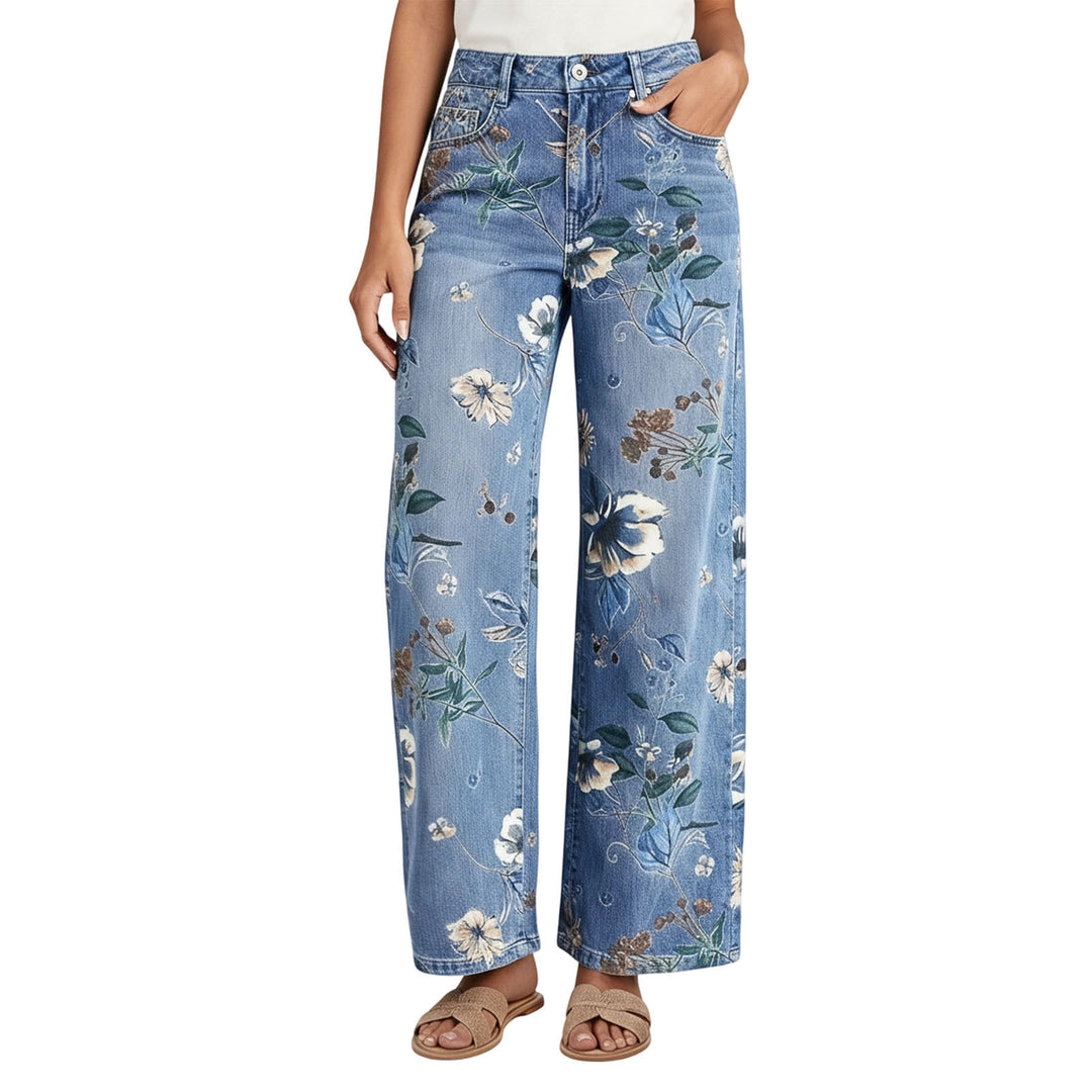 Floral Print Jeans for Women High Waist Vintage Wide Leg Denim Pants Loose Fit Fashion Trousers for Dating durable