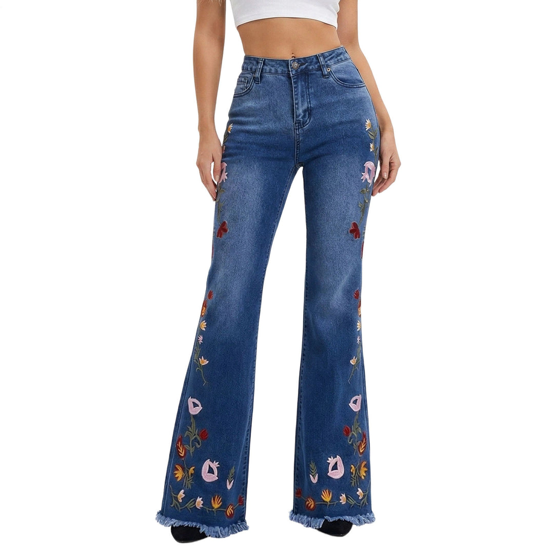 Embroidered Jeans Flare Leg Retro High Waisted Long Stretchy Bootcut Jeans for Daily Wear Going Out Vacation valuable