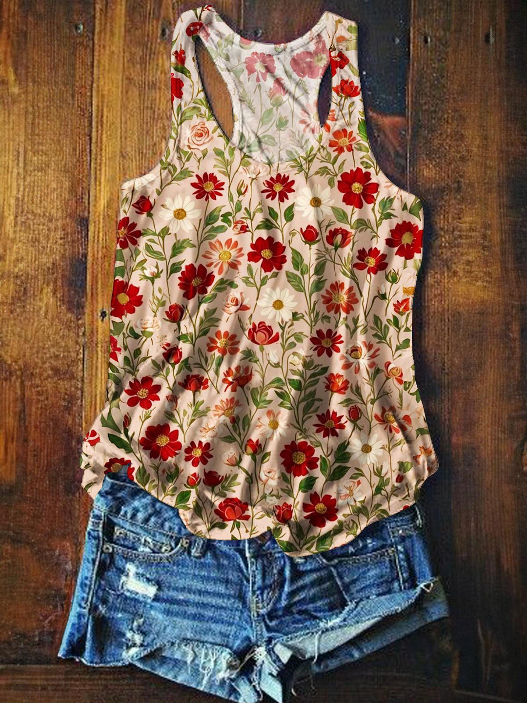 Retro Flower Printed Casual Tank Top