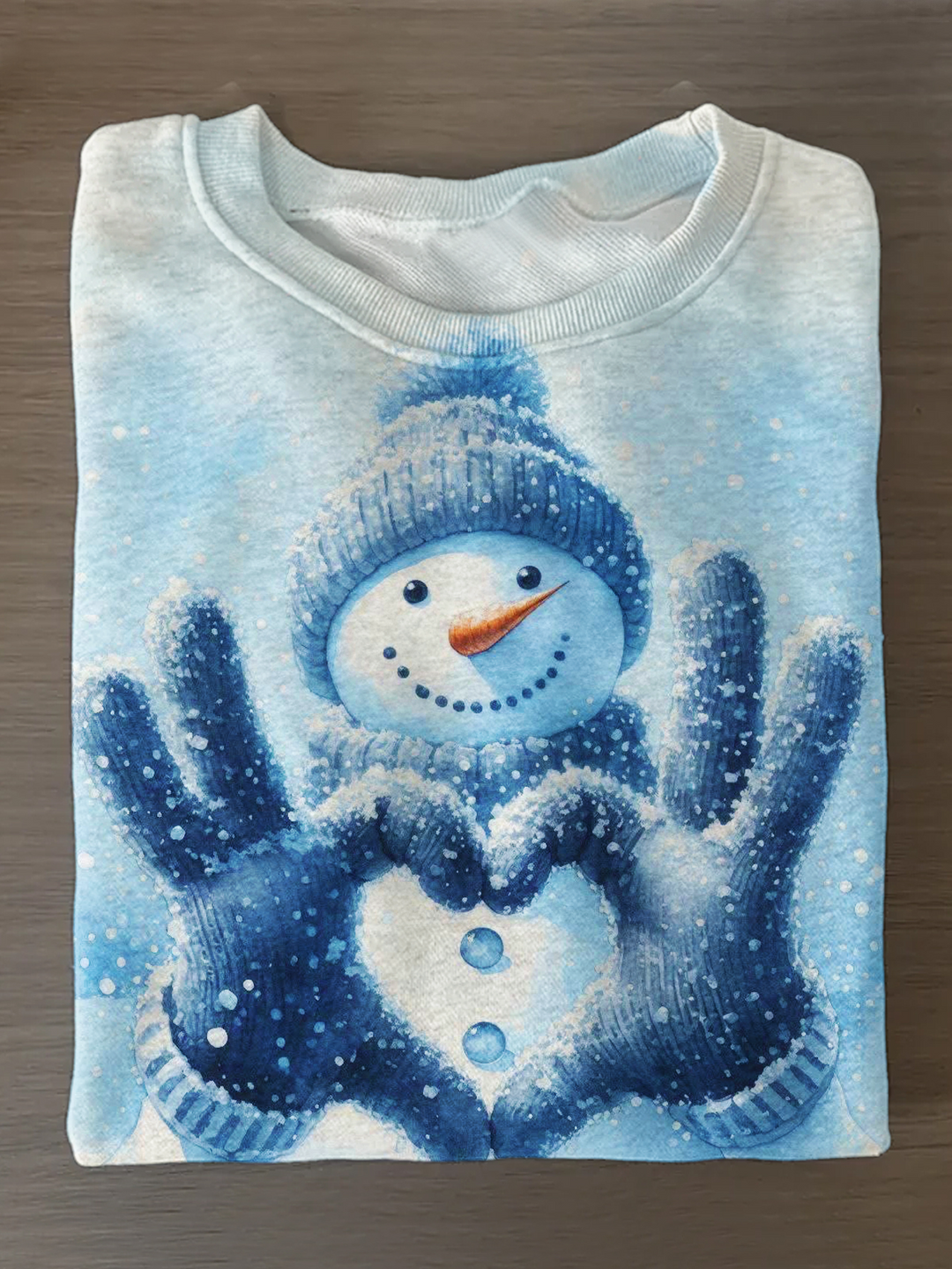 Cute Snowman Making A Heart Shape Printed Long Sleeve Casual Top