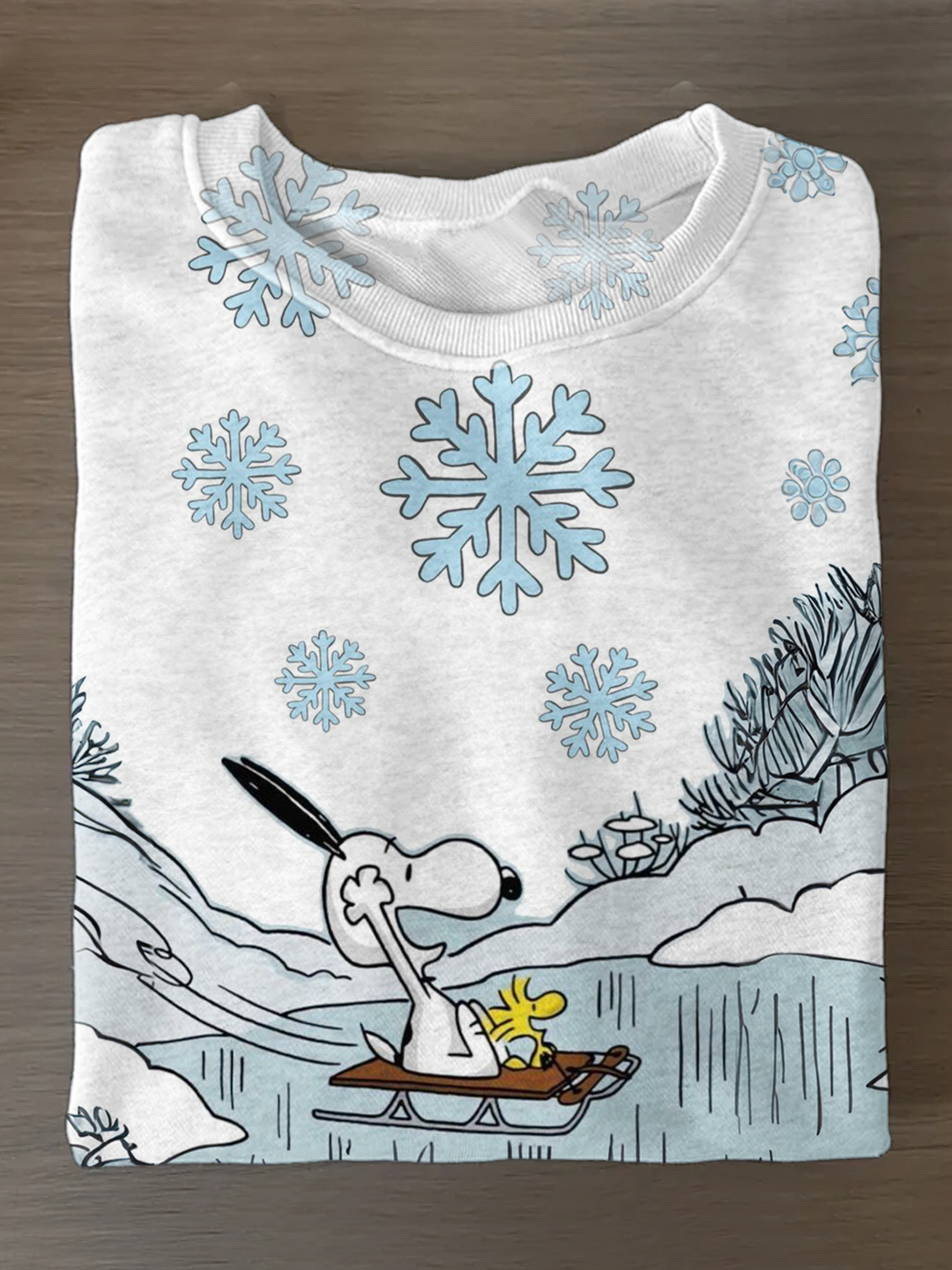 Fun Snoopy Woodstock Ice Skating Printed Long Sleeve Casual Top