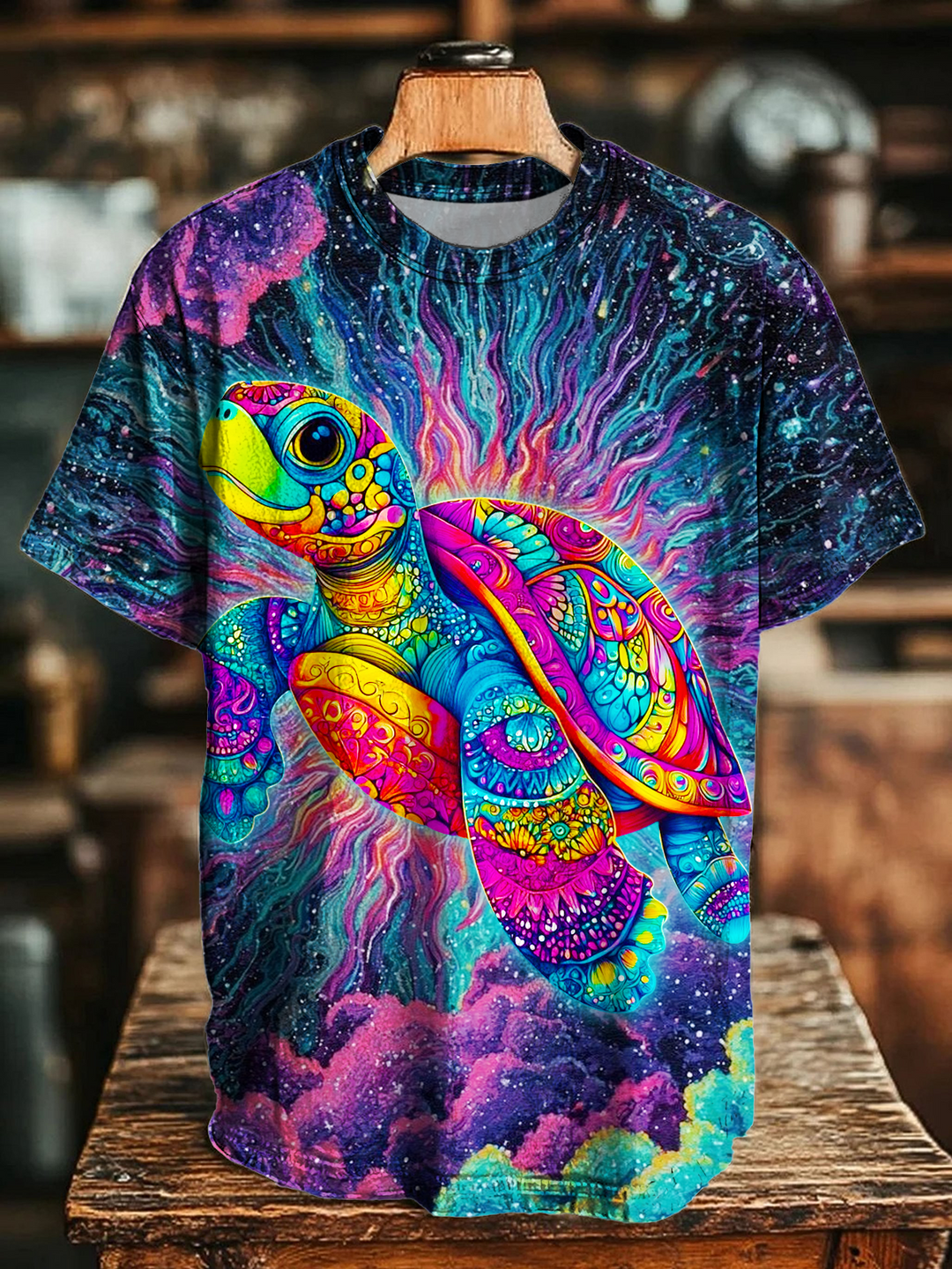 Retro-colored Tie-dye Hippie Turtle Crew Neck T-shirt