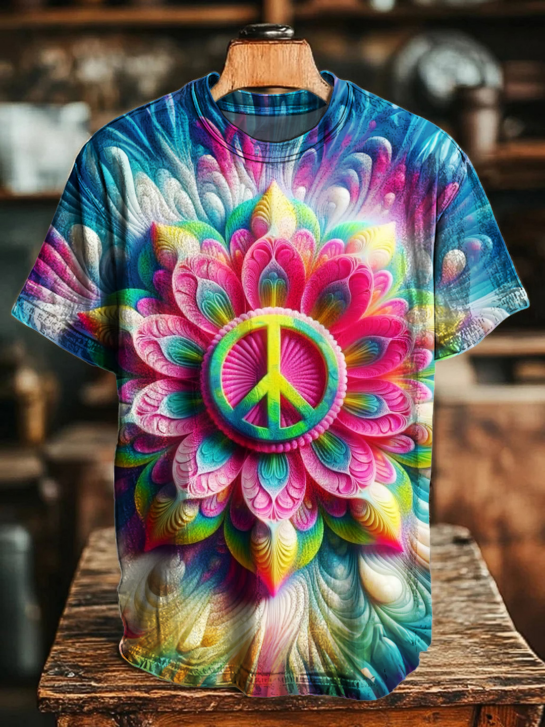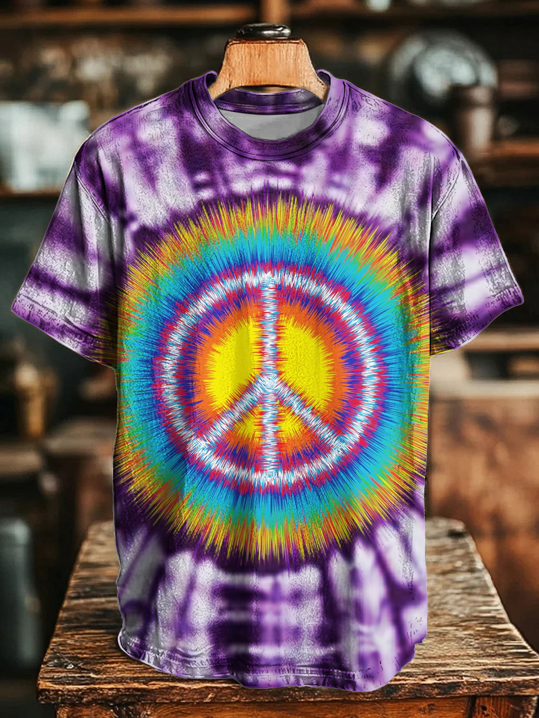 Tie-dye Hippie Peace Sign Crew Neck T-shirt