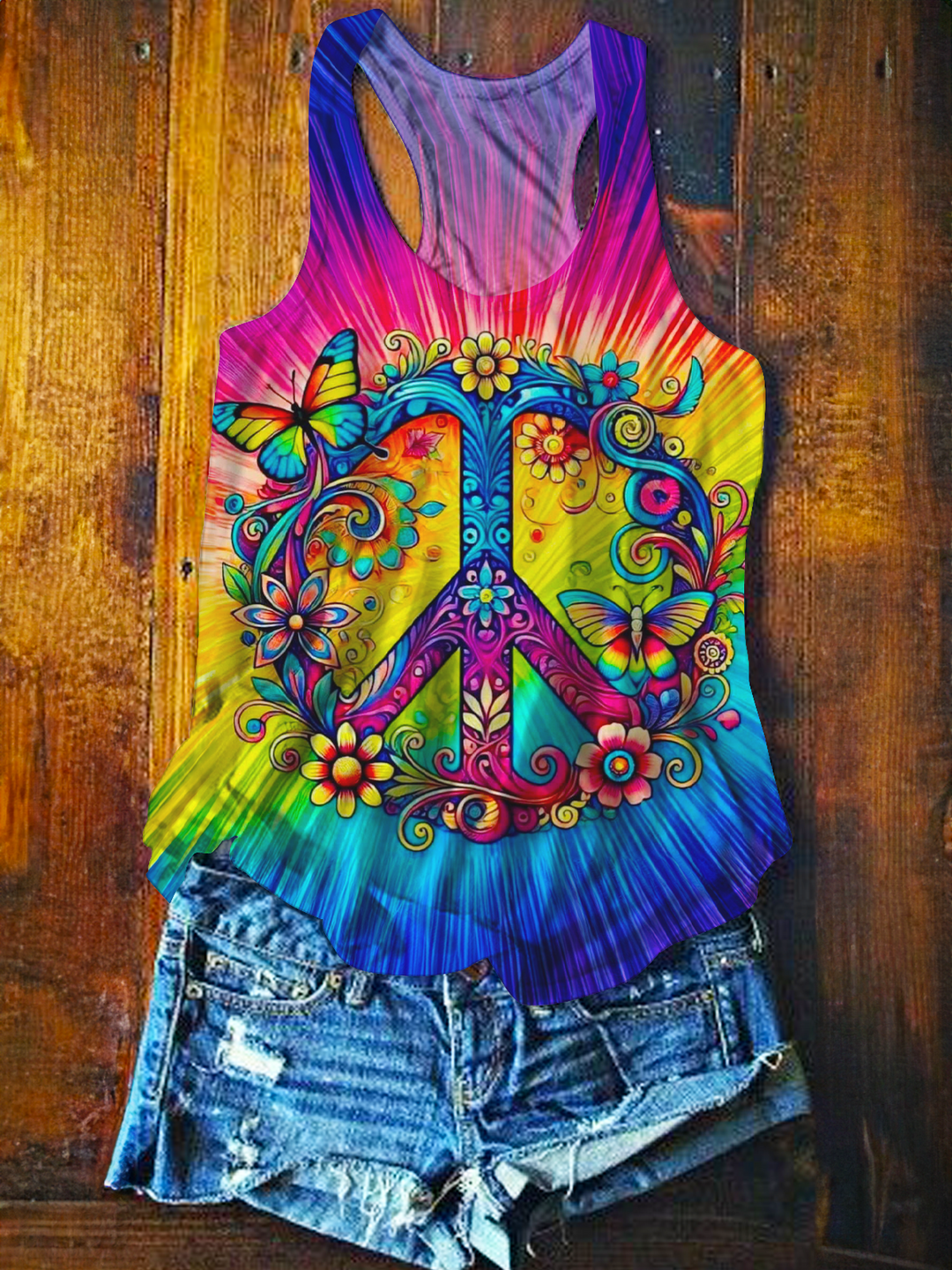 Colorful Tie-Dye Butterflies Hippie Peace Printed Casual Tank Top