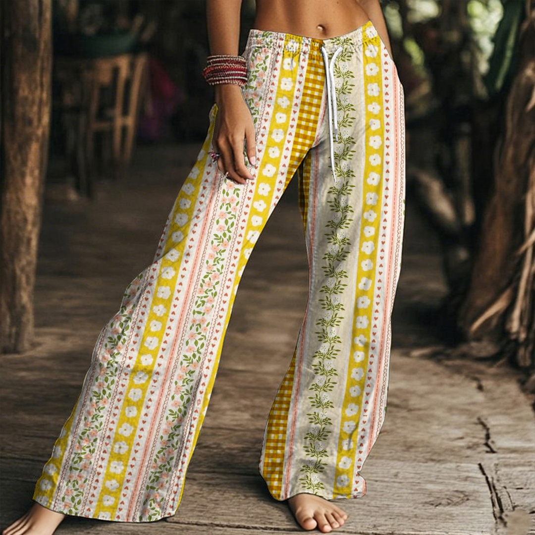 Women's Vintage Floral Striped Drawstring Wide-Leg Pants