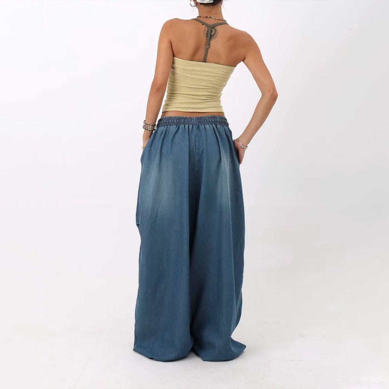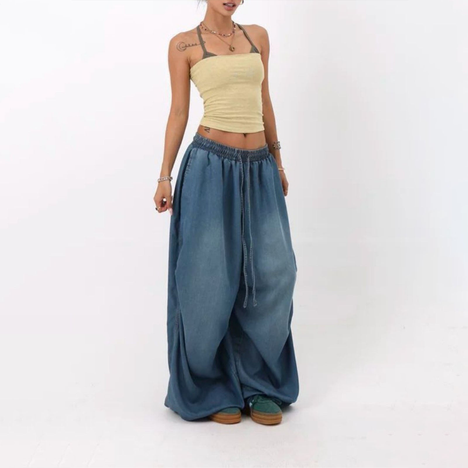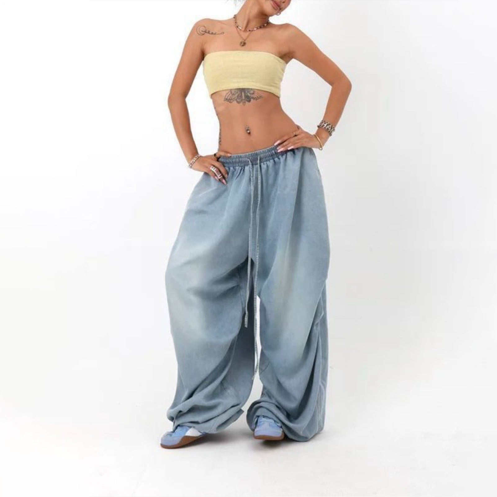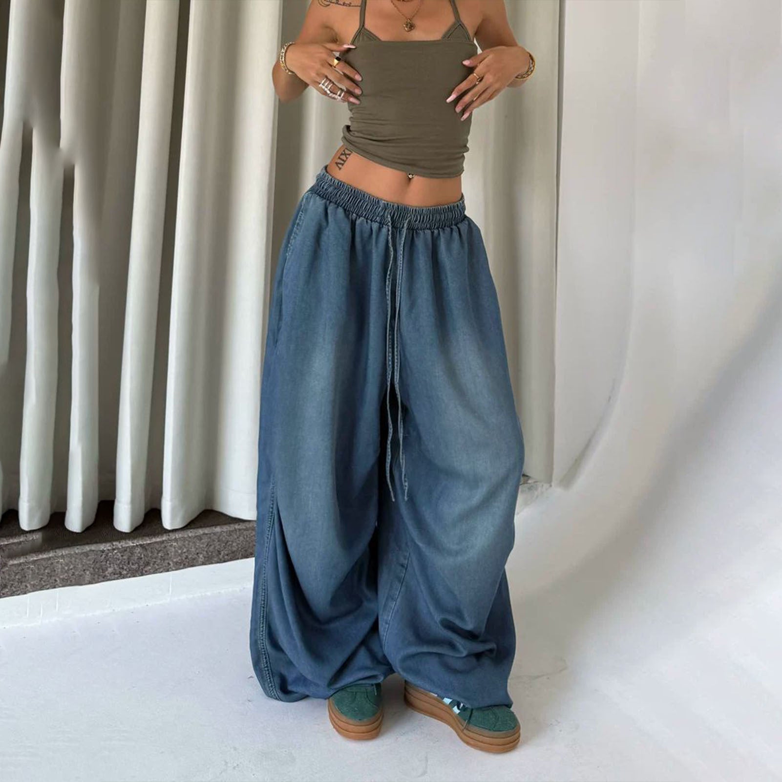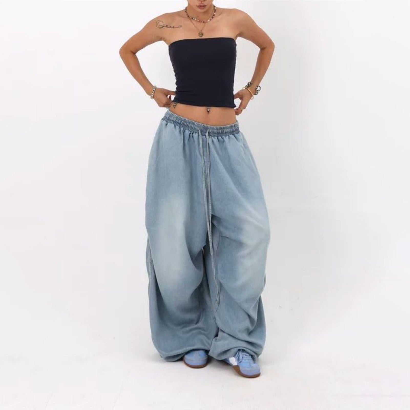 Baggy jeans with a loose fit offer outstanding comfort for various occasions. The elastic waist and drawstring design ensure an adjustable fit, making these denim pants versatile for party wear, going out, daily wear, and travel. Crafted for style and ease, these baggy jeans suit casual and semi-formal settings effortlessly. The breathable fabric enhances comfort during extended use, while the timeless denim aesthetic pairs well with diverse outfits. Ideal for individuals seeking relaxed yet trendy attire, these loose-fit jeans adapt seamlessly to different activities and environments. Elevate your wardrobe with these adaptable baggy jeans, perfect for modern lifestyles.